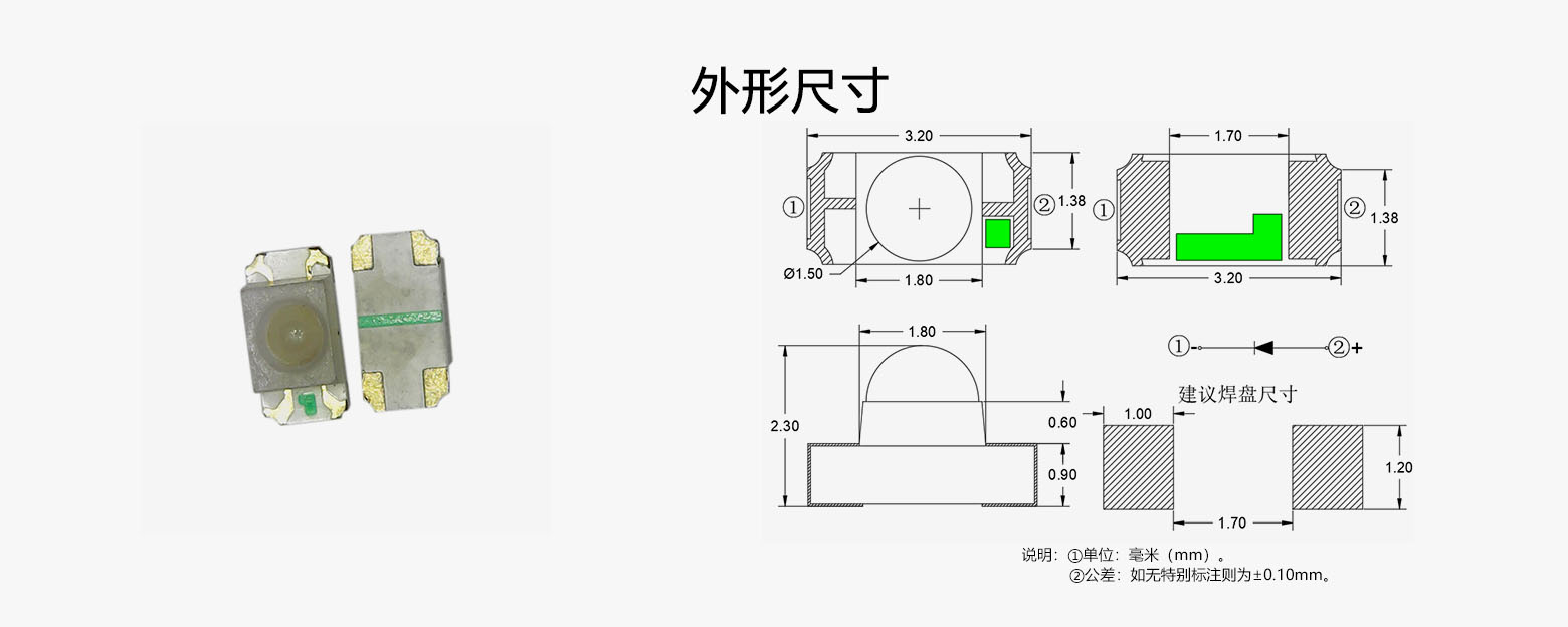 | 1206外凸-2.35T | AAV | AAV.012.YG000 | 3.2*1.6*2.35 | Yellow Green普绿 | 565-574 | 1.7-2.3 | 11.5-90 | 30/60 | IF=5 | 3000pcs/盘 | |