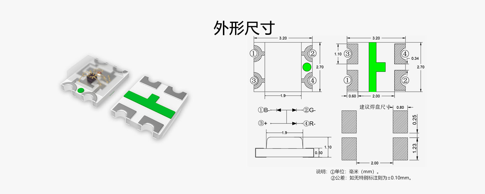 • 尺寸:L/W/H:3.2*2.7*1.1mm