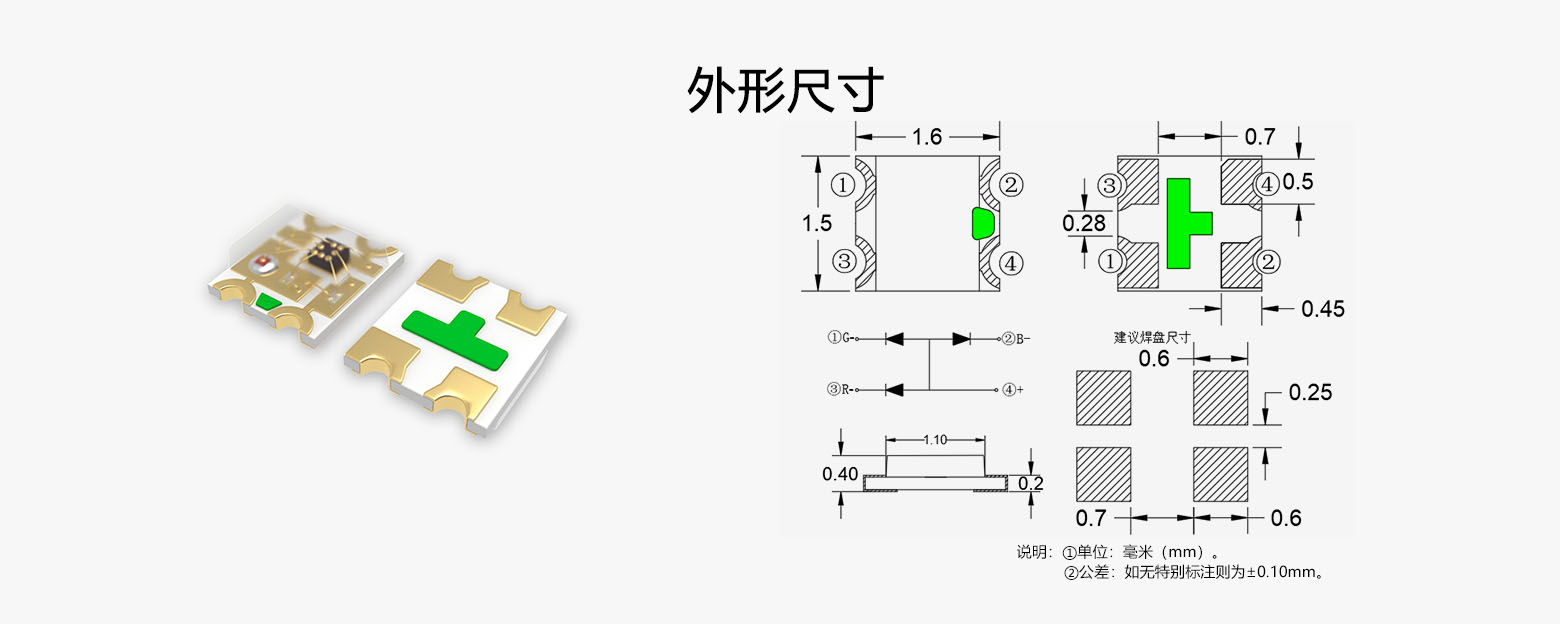 • 尺寸:L/W/H:1.6*1.5*0.4mm