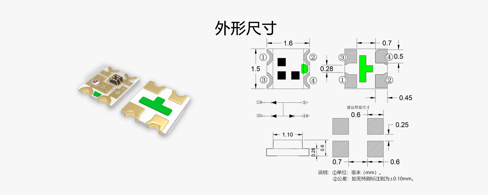 • 尺寸:L/W/H:1.6*1.5*0.6mm