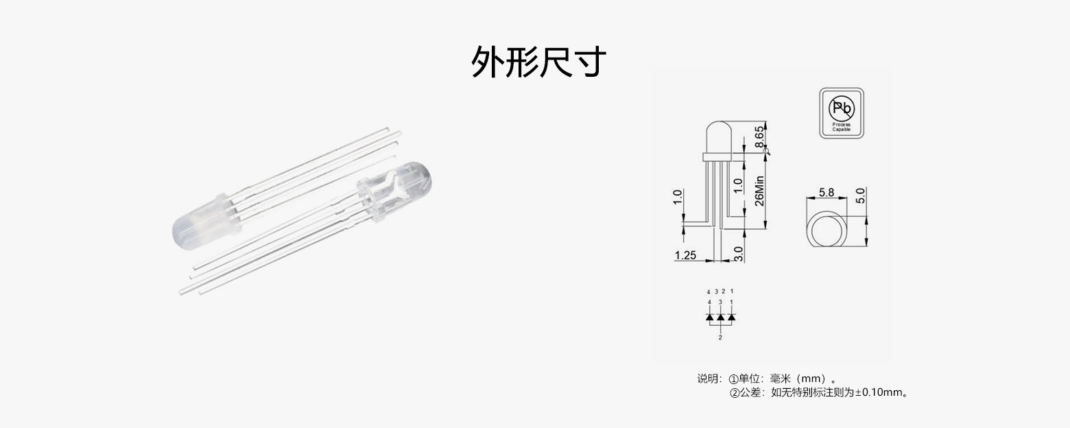 • 型号:5mm 圆头全彩(红绿蓝)