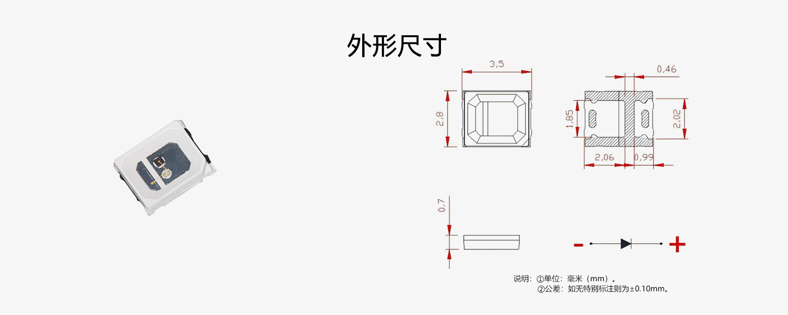 • 尺寸:L/W/H:2.8 x 3.5 x 0.8 mm