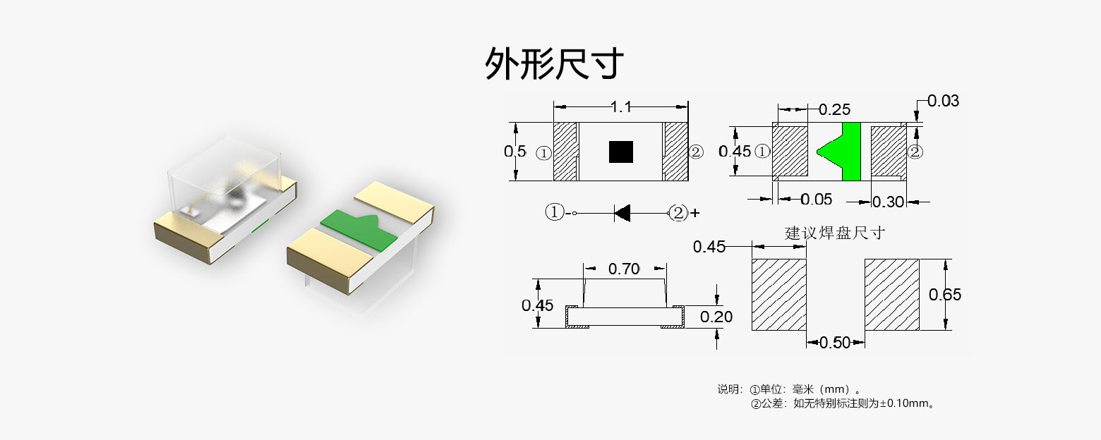 • 尺寸:L/W/H: 1.0*0.5*0.45mm