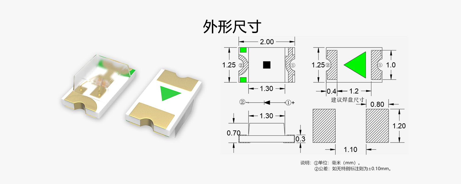 • 尺寸:L/W/H: 2.0x1.25x0.7mm