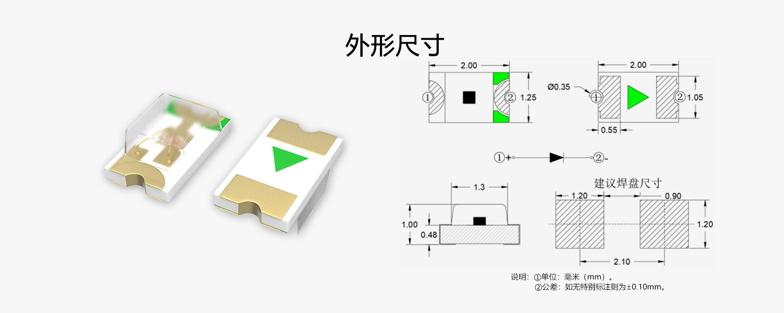 • 尺寸:L/W/H: 2.0x1.25x1.0mm