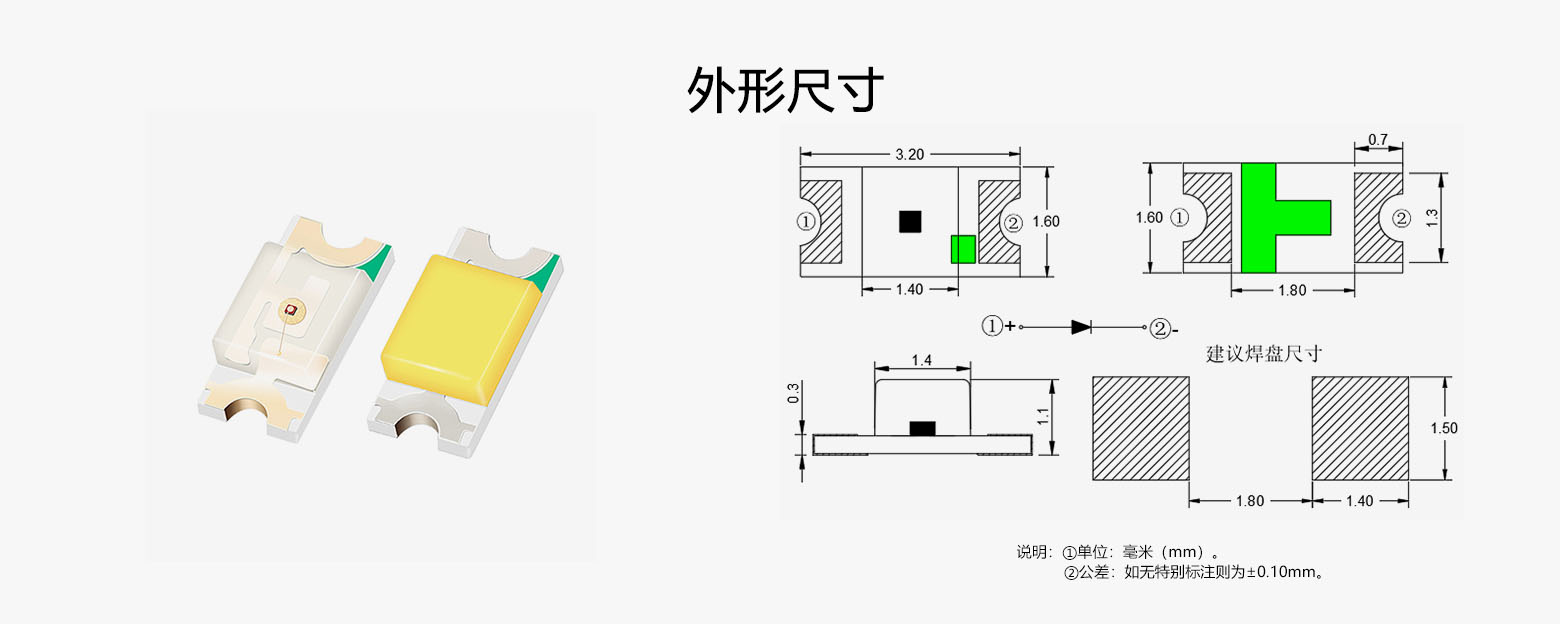 • 尺寸:L/W/H: 3.2*1.6*1.1mm