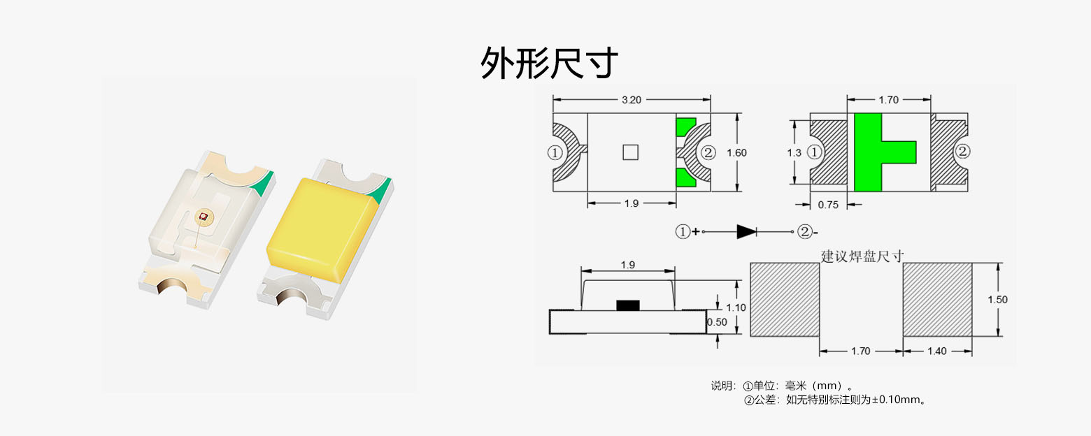 • 尺寸:L/W/H: 3.2*1.6*1.1mm