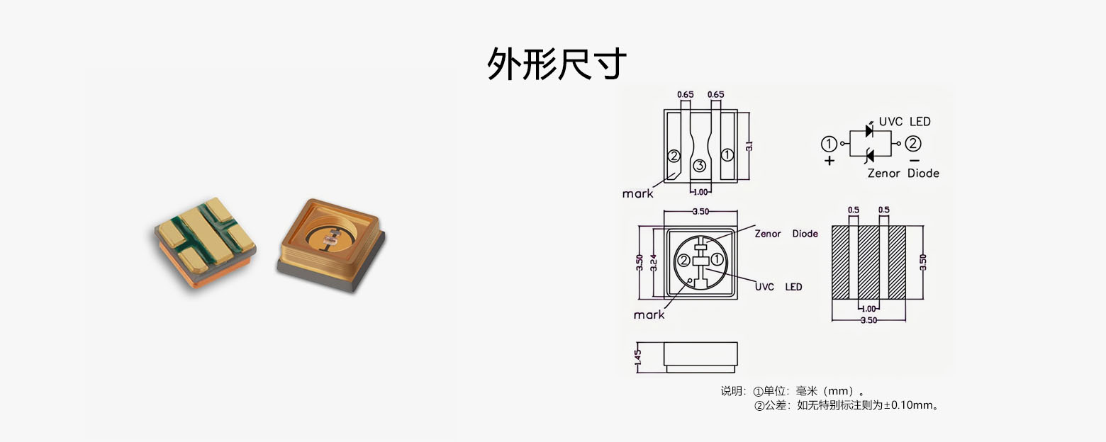 3535UVC单波紫外杀菌灯珠5-8mW