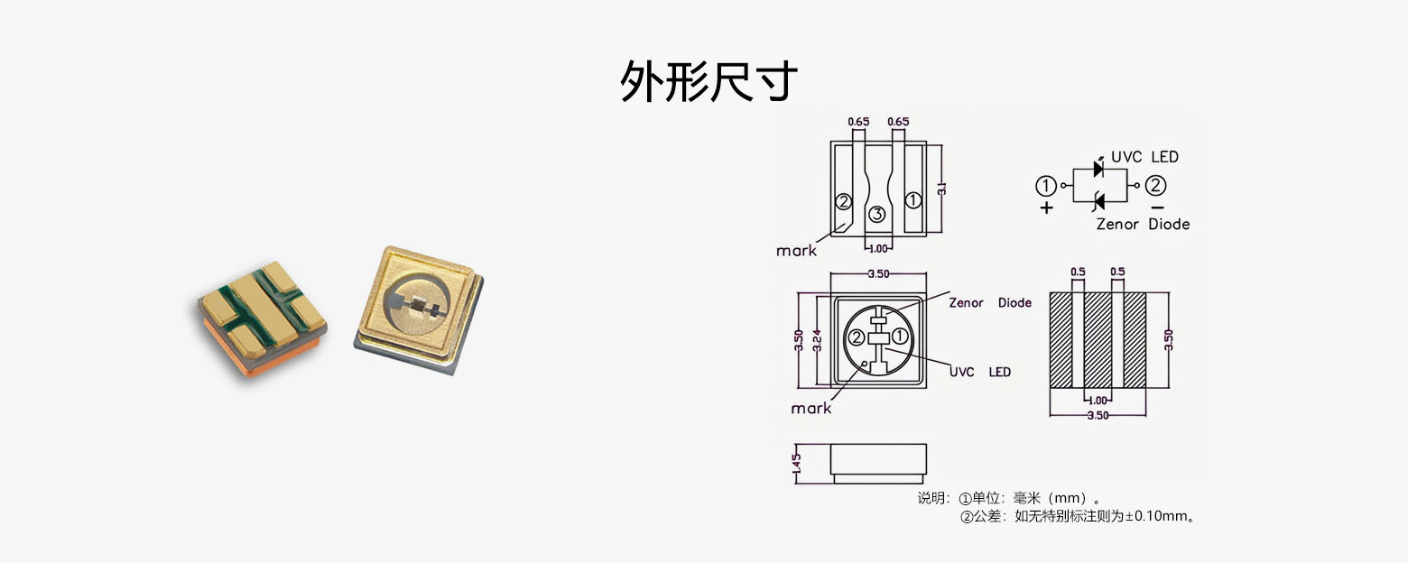3535UVC+UVA双波紫外杀菌灯珠3-5mW